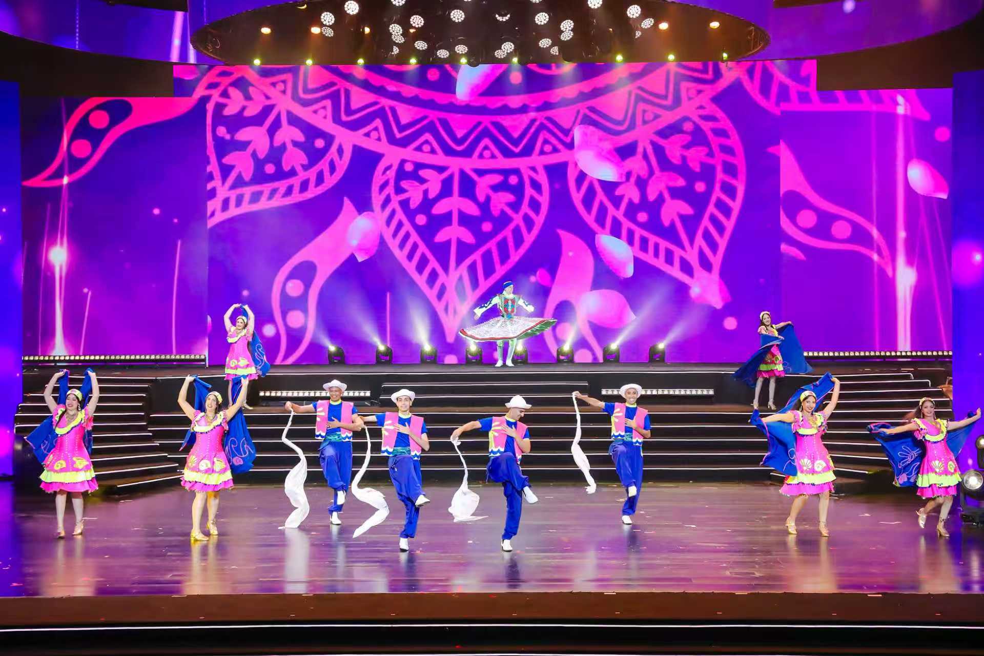 这是一曲多元文化的创意交响。塞尔维亚科洛舞团手拉手的圆圈舞,洋溢着巴尔干半岛的质朴与热情;菲律宾罗布克童声合唱团的天籁之音,不仅以《命运与共》唱出人类共鸣,更以一曲中文《茉莉花》实现了跨文化的亲切致意。美国青年舞者在欧洲宫廷舞与木屐踢踏间自如切换,展现文化交融的灵动风采。这些来自世界各地的艺术形式,将宏大叙事转化为民众可感知、可理解、可共鸣的文化体验,真正实现了从“各美其美”到“美美与共”的升华。