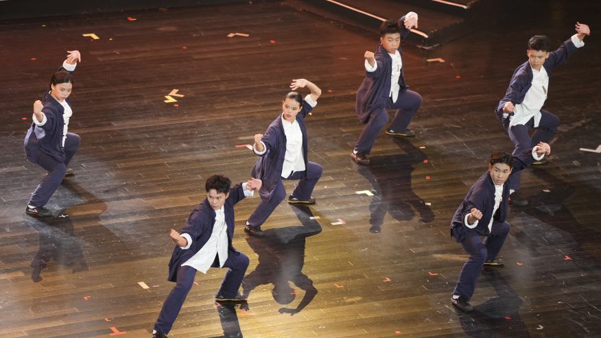 《功夫佛山》一出场,拳风乍起,气势如虹。咏春、洪拳等招式在非遗传承人与少年武者手中刚柔并蓄、收放有度,不仅展现“武术之城”的硬核底蕴,更传递出文化传承中生生不息的精神力量。