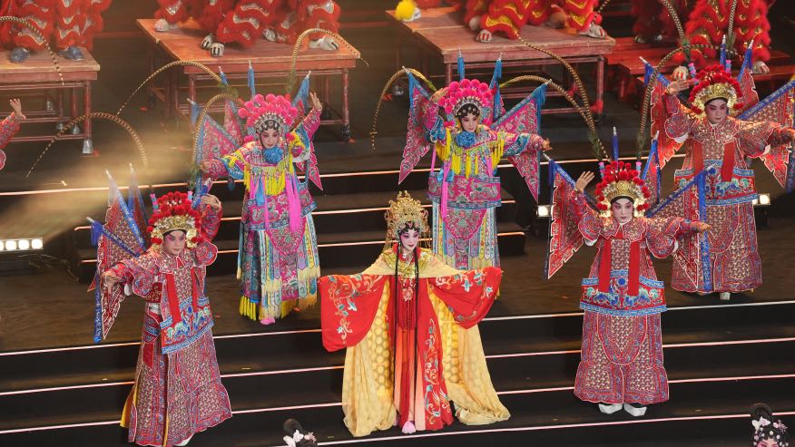 开场节目《风起岭南》以粤剧名段《琼花焕彩》悠扬唱腔为引,醒狮凌空跃起,水袖轻扬与雄狮腾跃相映生辉。刚与柔、声与形在空间中交织,岭南文化的深厚底蕴与时代活力顷刻迸发,点燃全场热情,也向世界展示佛山的热情与开放。