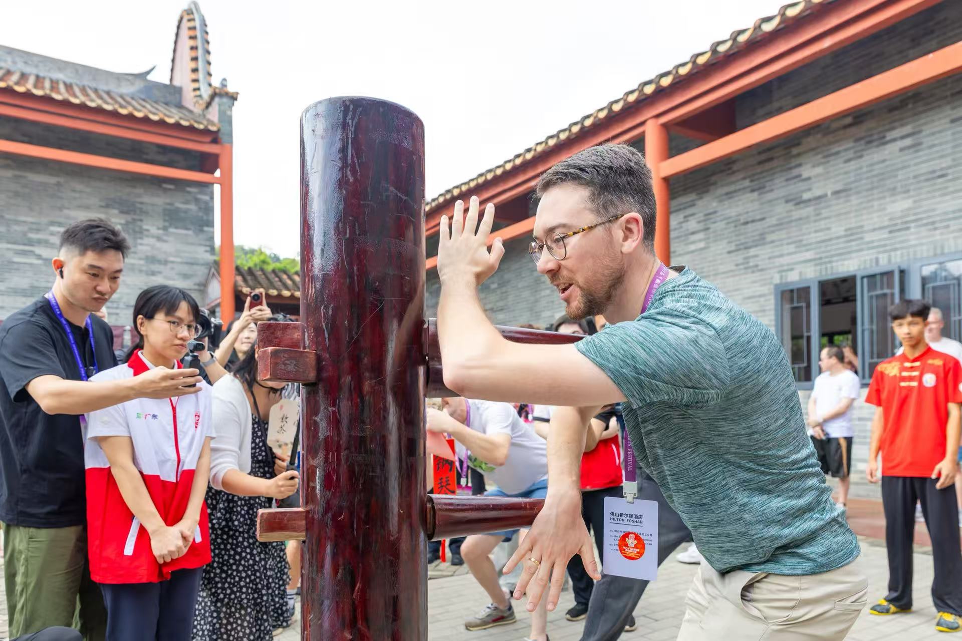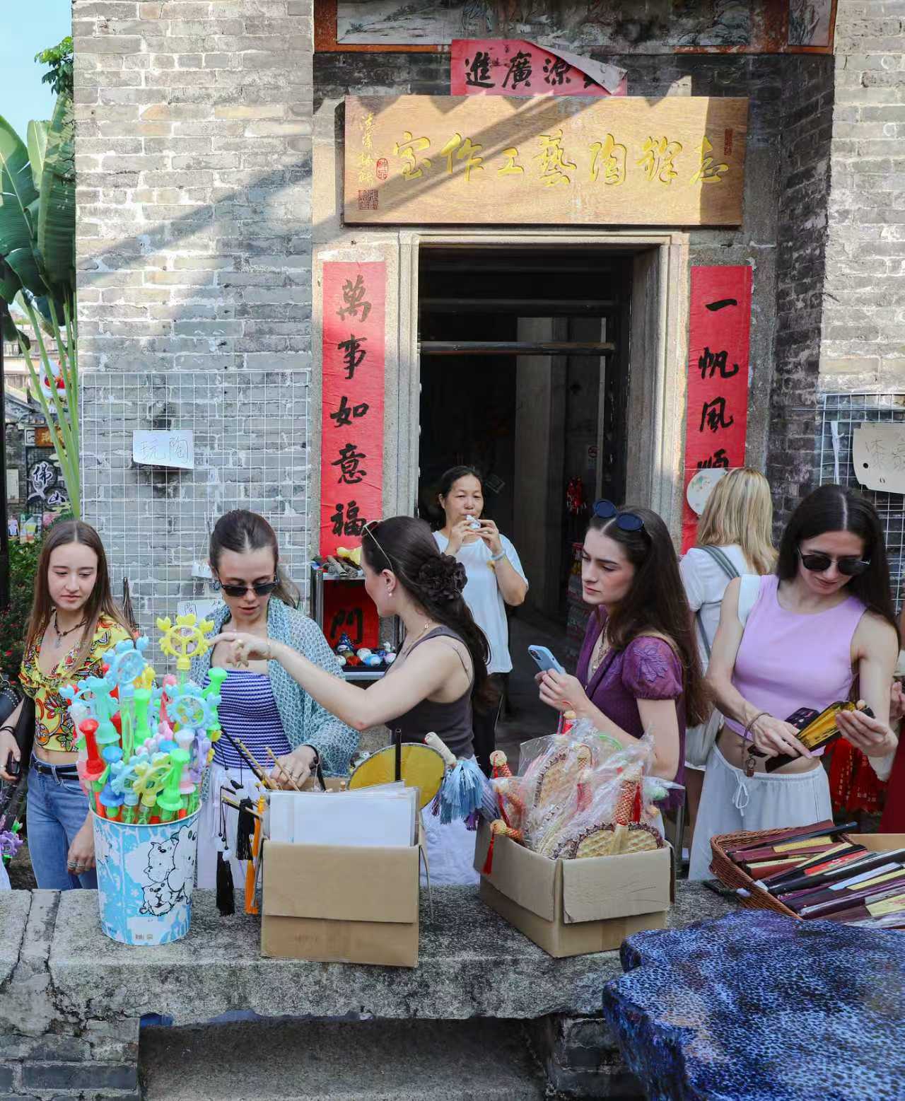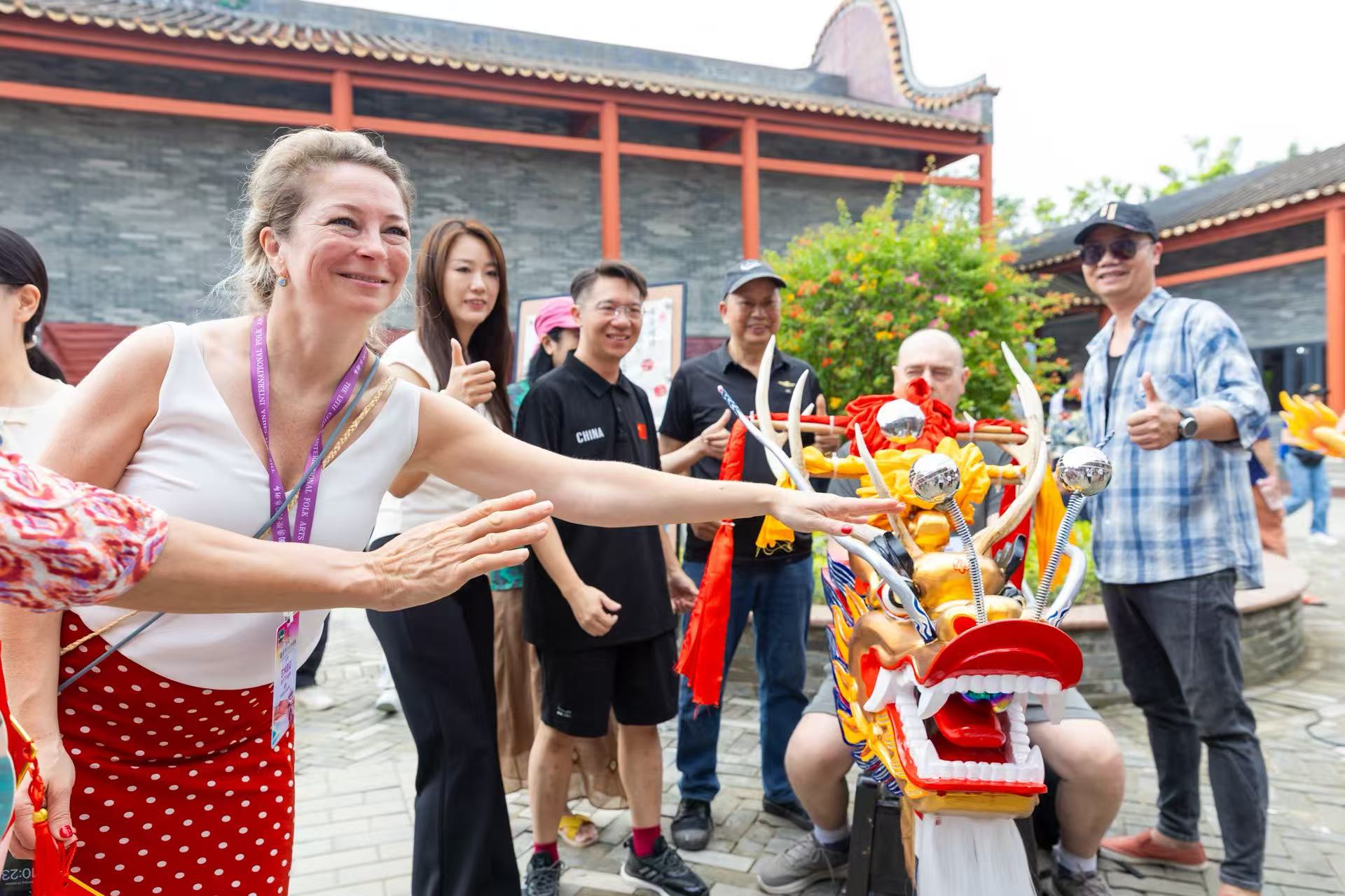 顺德均安李小龙乐园成为多国艺术团感知岭南非遗的沉浸式课堂,荷兰、哥伦比亚、塞尔维亚等多国艺术团成员在这里亲身参与粤剧、武术、书法、香云纱染整等非遗项目,满载文化纪念品尽兴而归。